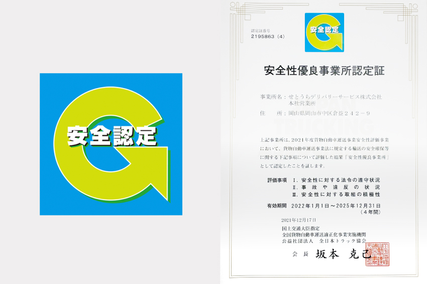 法令遵守や事故防止、安全管理体制が評価され、安心して任せられる運送事業者として認められました。